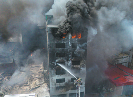 Peruvian firefighters battle a major fire at a toy store in downtown Lima, Peru, on Tuesday. The incident did not result in any fatalities. Nearby residents were evacuated from their homes due to the risk of the blaze spreading to surrounding buildings, as reported by local media.