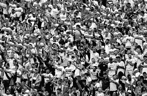 Sao Paulo fans cheer on their team during Sunday's Brasileiro Championship game against Fortaleza. Brazilian soccer is expected to start closing the gap to the major European leagues thanks to a new law that allows outside investment in clubs.