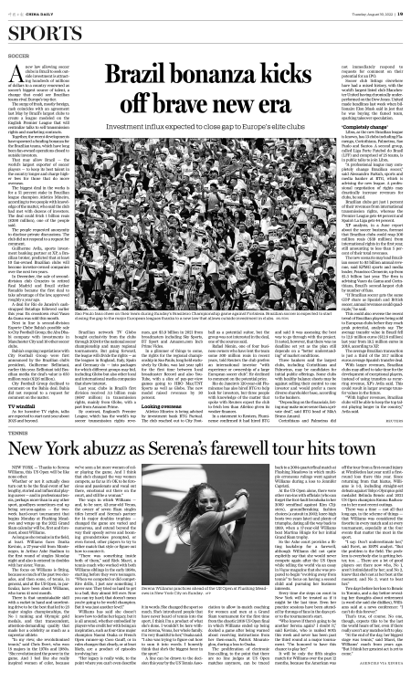 "With higher revenues, Brazilian clubs will be able to keep the top talent playing longer in the country," Avila said.