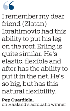 Haaland's incredible flexibility despite his giant frame also drew comparisons from Guardiola to another former Barcelona striker, Zlatan Ibrahimovic.