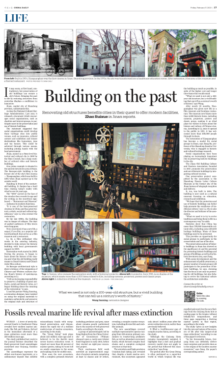 The restoration of Xiaoguanghan has become a model for social groups in Jinan, says Jiang Bo, professor of the Shandong Jianzhu University, who is engaged in historic and cultural heritage research.