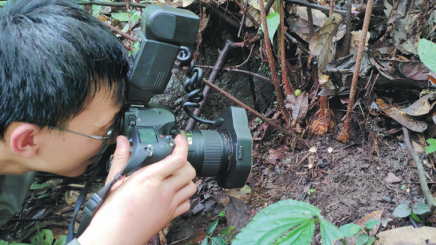 Ya Jidong takes photos of Thismia malipoensis in the nature reserve in 2019.