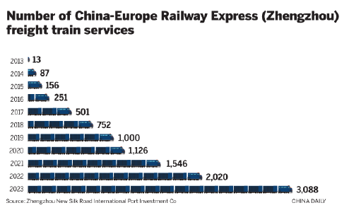Number of China-Europe Railway Express (Zhengzhou) freight train services