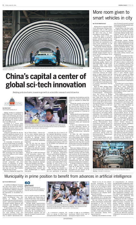 Moreover, Beijing has topped the list of "Nature Index — Science Cities" for years, ranking among the most innovative cities in the world, according to Springer Nature Group, an internationally renowned science and technology publishing institution.