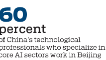 The city is home to more than 40,000 technological professionals specializing in core AI sectors, accounting for 60 percent of the country's total. Nine universities in Beijing have opened AI institutes or research centers, accounting for one-fifth of such school-led institutions nationwide, Xinhua News Agency reported.
