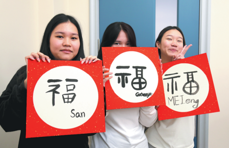 Thai students hold the Chinese character "fu", which they wrote in a calligraphy class at Shenyang Ligong University as part of an exchange trip in October.