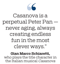 "Casanova is a perpetual Peter Pan — never aging, always creating endless fun in the most clever ways. He is a magician, but more importantly, a fighter of life with countless followers," says Gian Marco Schiaretti, who plays Casanova.