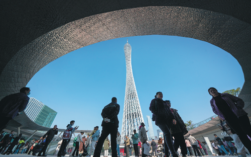 People tour the Canton Tower business area during its debut in Guangzhou, Guangdong province, on Dec 28.