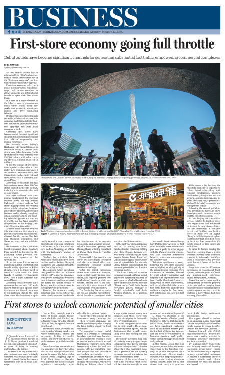 To further tap this new economy, fostering the first-store economy was highlighted as a key priority at the annual Central Economic Work Conference in December, followed by retail industry innovation and upgrade of an implementation plan issued by the Ministry of Commerce along with six other departments, which explicitly calls for the promotion of the first-store economy and outlines strategies for first stores, first exhibitions, and new product launches.