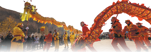 Residents perform a dragon dance at a square in Yuxian county of Zhangjiakou, Hebei province, on Feb 1.