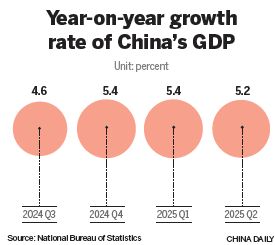 The Chinese economy expanded 5.3 percent year-on-year in the first half of 2025, official data showed on Tuesday, defying mounting global headwinds and providing a solid footing for achieving the full-year growth target of around 5 percent.