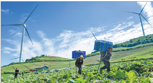 Vegetable farmers transport harvested cabbage in mountainous Yuntaihuang village, Yichang's Zigui county, Hubei province, on Wednesday. As a major off-season cultivation area, the village's unique geographical and ecological advantages create an ideal natural greenhouse for high-altitude off-season vegetables.