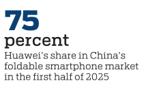 According to market consultancy International Data Corp, Huawei currently leads China's foldable smartphone market with a 75 percent share in the first half of 2025, shipping 3.74 million units.