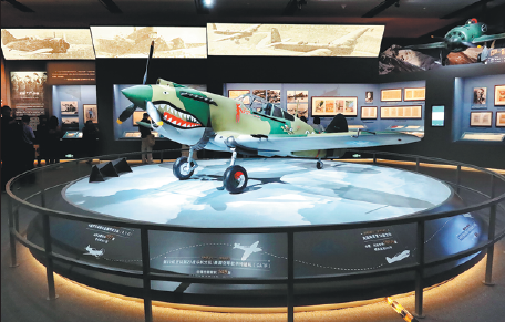 Models of the P-40 fighter (center) and the I-16 fighter (top right) are on display at the commemorative exhibition marking the 80th anniversary of the victory in the Chinese People's War of Resistance against Japanese Aggression and the World Anti-Fascist War. The exhibition was held at the National Museum of China in Beijing, on Tuesday.