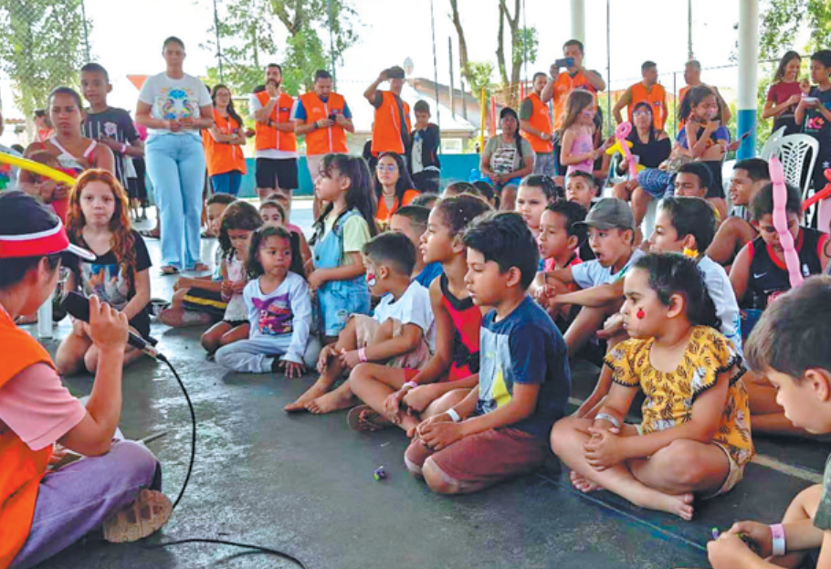 Staff members from State Grid Suqian Power Supply Co interact with youngsters from a community in Americana, Sao Paulo State, Brazil. The Chinese builders, there to help set up local power facilities, aim to bolster Sino-Brazilian friendship through such interactions.