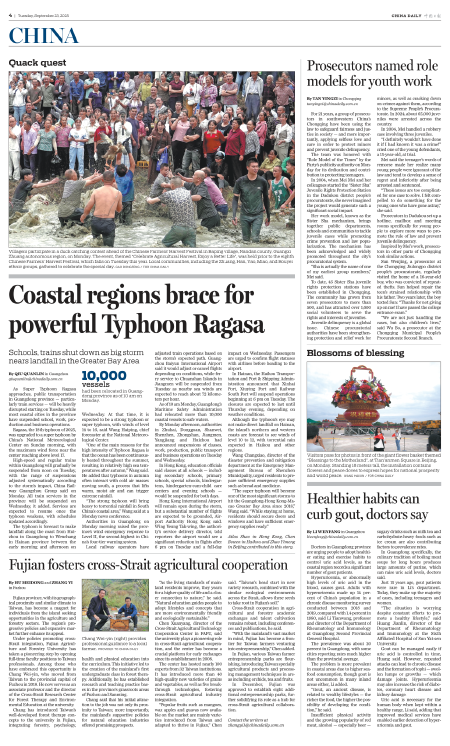 Ragasa, the 18th typhoon of 2025, was upgraded to a super typhoon by China's National Meteorological Center on Sunday morning, with the maximum wind force near the center reaching above level 17.