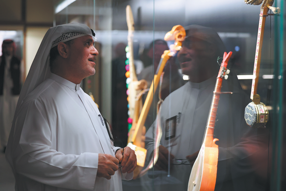 A visitor views ancient Chinese musical instruments at the National Museum of Saudi Arabia in Riyadh on Sunday. The exhibition, The Sound of Harmony: Musical Instruments in Ancient China, showcases more than 100 pieces from the National Museum of China, tracing the evolution of Chinese music and artistry across millennia.