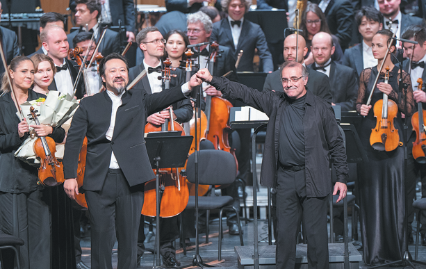 Conductors Lin Daye and Alexander Rudin after the concert in Wuxi in 2024, which marked the first collaboration between the Wuxi Symphony Orchestra and the Russian National Orchestra.
