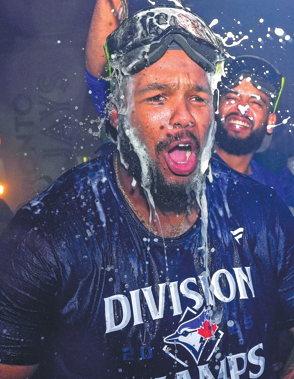 Toronto's Vladimir Guerrero Jr celebrates clinching the American League East Division title on Sunday.