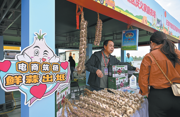 A vendor sells garlic during a Chinese Farmers' Harvest Festival event in Tianjin on Sept 23.