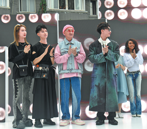 The "Grandpa" from the fashion-style influencer duo "Kangkang and Grandpa" performs during a fashion show in Chengdu in September 2023.