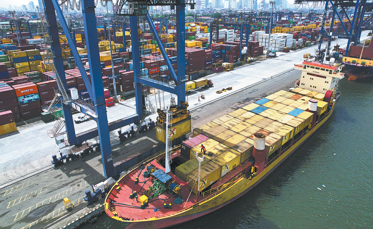 Port workers prepare to unload a ship carrying stacks of containers as it docks at the Manila North Harbour Port in the Philippines, on Aug 7.From that day, US imports from Indonesia, Malaysia, Cambodia, the Philippines and Thailand faced 19 percent tariff rates.