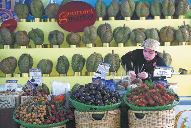 A vendor prepares fruit for sale at her stall at a fruit fair in Bangkok, Thailand, on May 5. The World Bank downgraded Thailand's GDP growth forecast for 2025 to 1.6 percent from 2.9 percent, marking the lowest growth prediction among ASEAN economies.