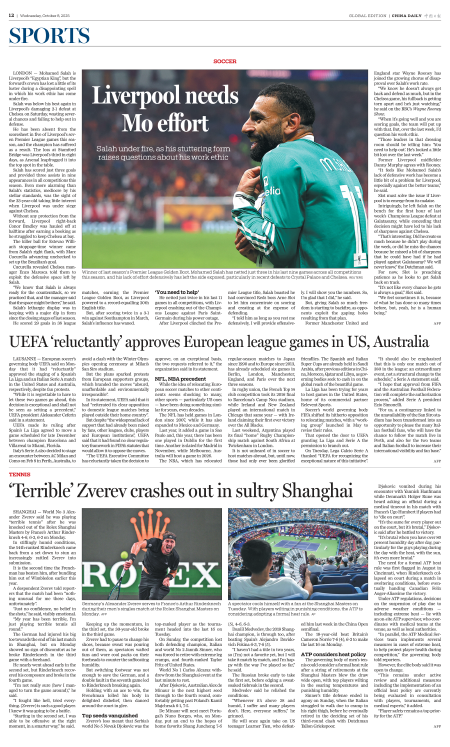 LONDON — Mohamed Salah is Liverpool's "Egyptian King", but the forward's crown has lost a little of its luster during a disappointing spell in which his work ethic has come under fire.