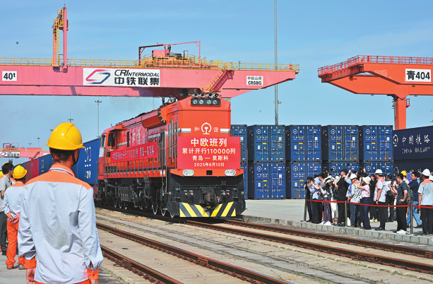 The 110,000th train of the China-Europe Railway Express service departs from Qingdao, Shandong province, in June.