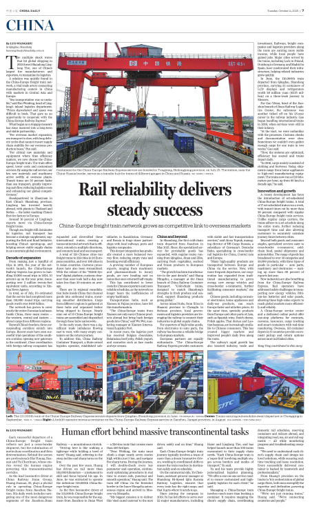 "For critical raw materials and equipment where time efficiency matters, we now choose the China-Europe freight train. The train offers speed, lower costs and customized services. By using the rail service, our key raw materials and machinery arrive swiftly at overseas plants. Transit times are 50 percent faster than sea transport, greatly improving cash flow, reducing logistics costs and enhancing our global competitiveness."