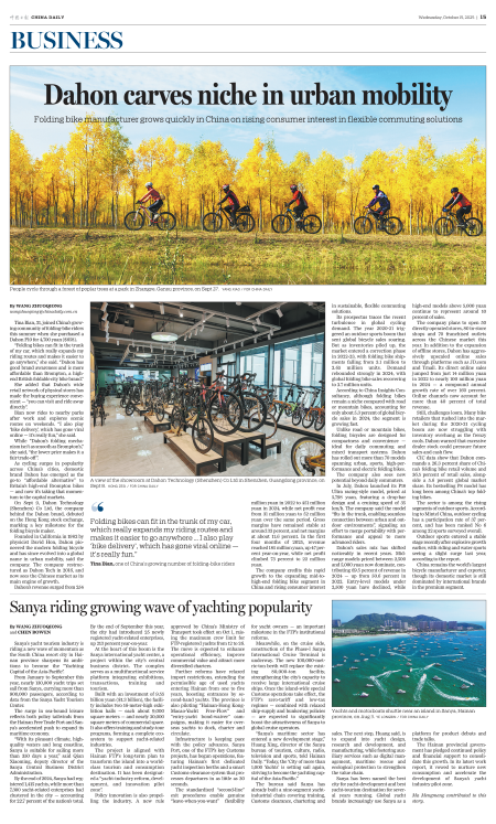 On Sept 9, Dahon Technology (Shenzhen) Co Ltd, the company behind the Dahon brand, debuted on the Hong Kong stock exchange, marking a key milestone for the folding bicycle maker.