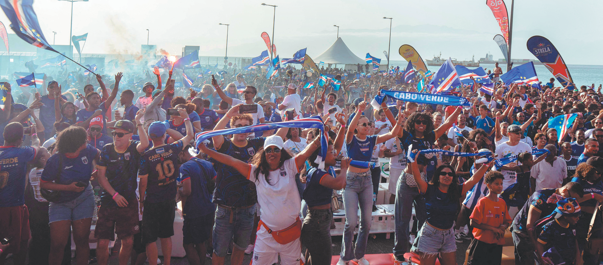Supporters celebrate Cape Verde's historic 2026 World Cup qualification at a fan zone in Sao Vicente, Cape Verde, on Monday.