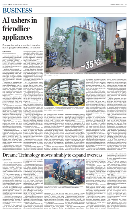 Chinese smart home appliance maker Dreame Technology is stepping up efforts to expand its global presence, pouring significant investment into research and development and driving technological innovation based on user demand.