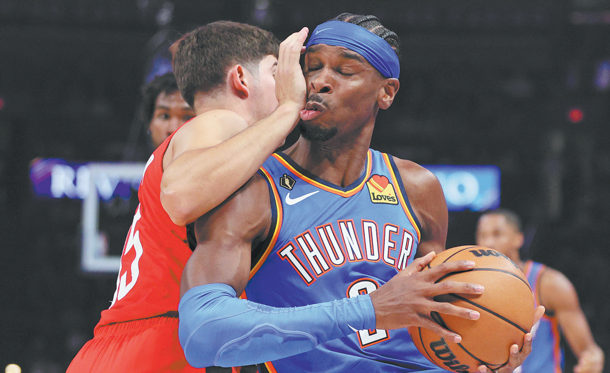 Shai Gilgeous-Alexander scored 35 points as the Oklahoma City Thunder launched the defense of its NBA crown with a thrilling season-opening 125-124 double-overtime victory over the Houston Rockets on Tuesday.