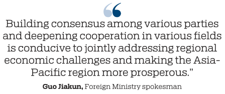 "Building consensus among various parties and deepening cooperation in various fields is conducive to jointly addressing regional economic challenges and making the Asia-Pacific region more prosperous."