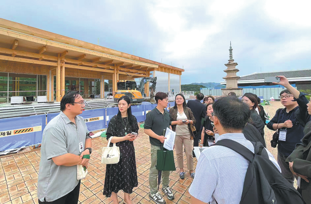 Journalists from China learn about the setting up of the APEC leaders' gala dinner venue at Gyeongju National Museum.