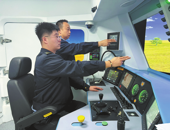 Train operators of China Railway Taiyuan Group hone their skills on new simulation driving consoles at the Hudong Electric Locomotive Depot, in order to improve their efficiency on the Datong-Qinhuangdao Railway line, which transports some 350 million metric tons of coal each year.