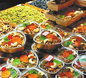 These harvests are hoarded in the 2,500-square-meter bazaar, which is an Aladdin's Cave come true. Fittingly, this folktale is set in Xinjiang. The cavern he stumbles into hosts a garden of trees laden with diamonds, pearls and emeralds, rather than apples and oranges. The difference is that the fruits in the market are real gems in their own right.