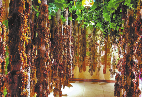 A small air-drying barn is displayed at Urumqi's Fruit Bazaar.
