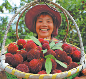 Farmers display freshly harvested bayberries in Da'ao village of Zhoushan, Zhejiang province, in June.