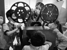 Children visit an exhibition of filmmaking in Zhengzhou, Henan province.