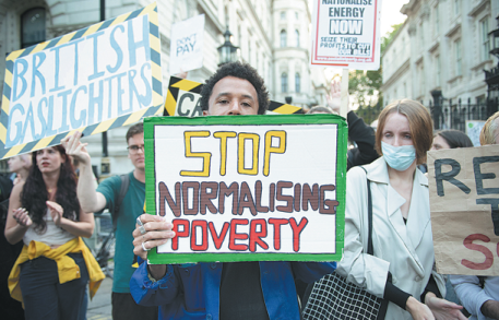 Protesters rally on Monday outside Downing Street in London after Liz Truss was elected leader of the United Kingdom's ruling Conservative Party. Truss was appointed by Queen Elizabeth II on Tuesday as the UK's new prime minister. See story, page 12