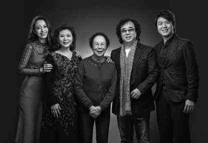 (From left) pianist Gina Alice Redlinger, who is Lang's wife, Lang's mother, Zhu, Lang's father and Lang pose for a photo.