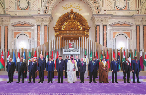 President Xi Jinping and Arab leaders pose for a group photo during the China-Arab States Summit at the King Abdulaziz International Conference Center in Riyadh, Saudi Arabia, on Friday.