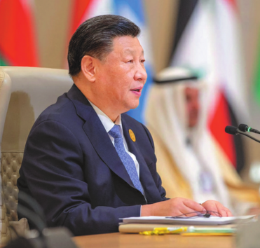 President Xi Jinping addresses the China-Arab States Summit in Riyadh, Saudi Arabia, on Friday.