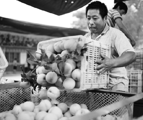 Peach growers in Difang town, Pingyi county, Shandong province, sell their produce to canned food producers.
