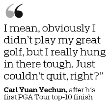 "I mean, obviously I didn't play my great golf, but I really hung in there tough. Just couldn't quit, right?" said Yuan, who was bidding to become the first Chinese mainland golfer to win on the PGA Tour.