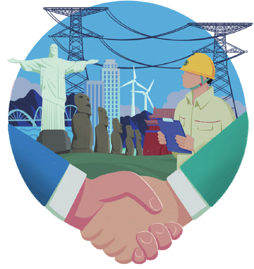A rendering of State Grid Corporation of China's efforts to expand international cooperation and improve the well-being of local communities.