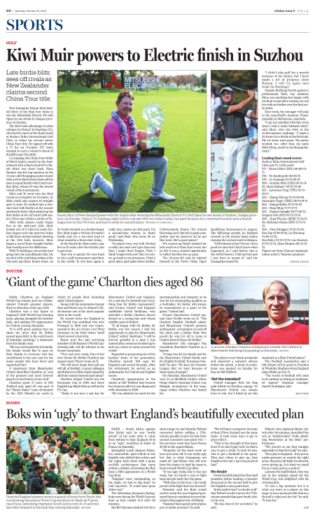 "Today is not just a sad day for Manchester United and England, it's a sad day for football and everything that Sir Bobby represented," said former United and England midfielder David Beckham, who attended a Bobby Charlton Soccer School as a young boy and whose middle name is Robert.