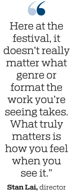 "Here at the festival, it doesn't really matter what genre or format the work you're seeing takes. What truly matters is how you feel when you see it," Lai says.